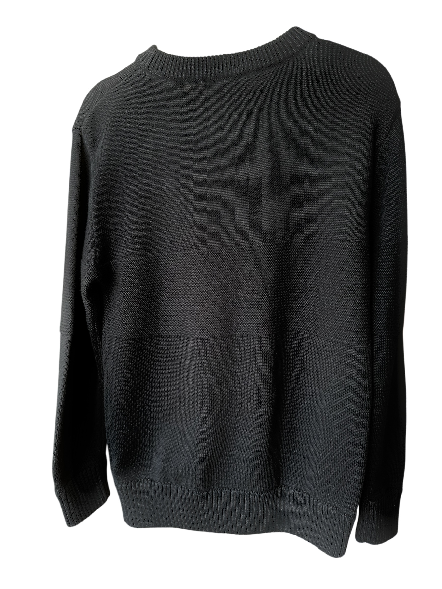 Modelo com o nome da marca na parte frontal, dois tipos de texturas e gola canelada.