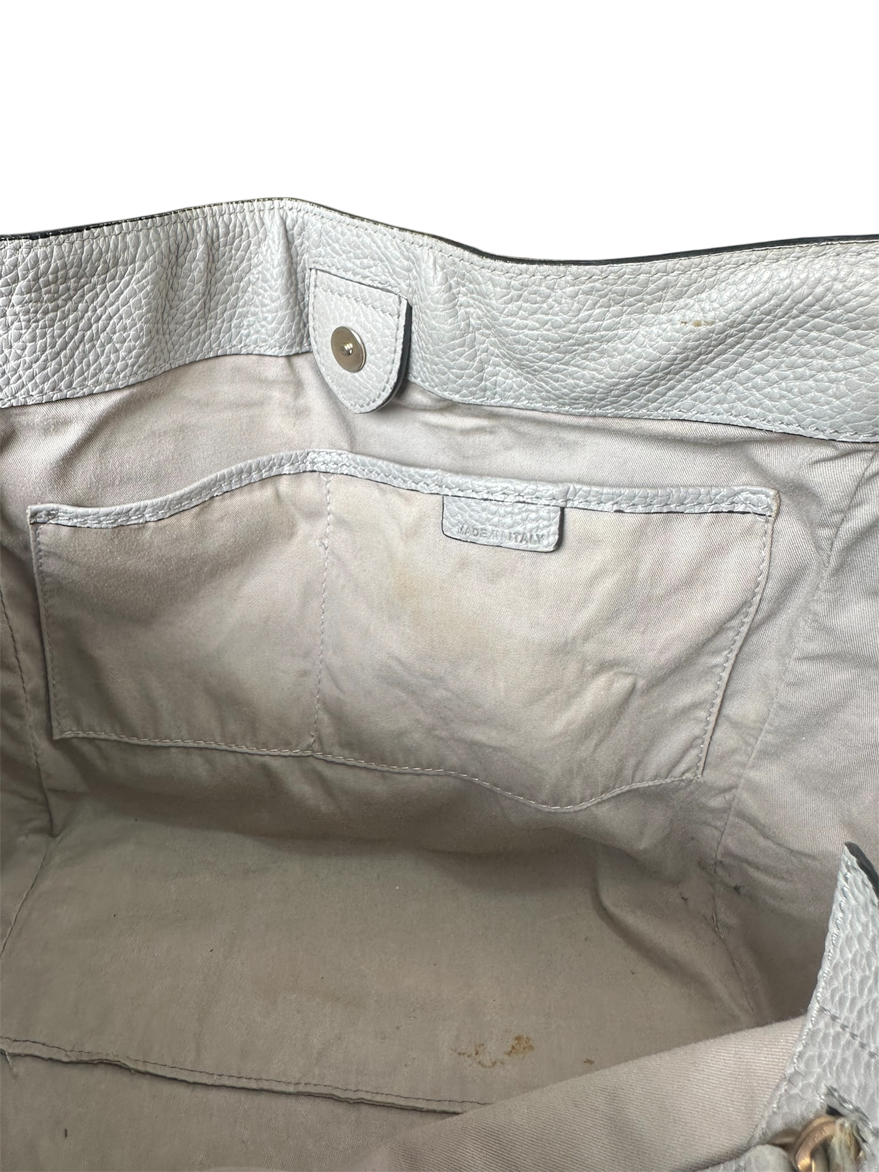 Seminova, em bom estado de conservação. Possui leves desgastes nas extremidades, sinais de uso e forro com algumas manchinhas marrom.