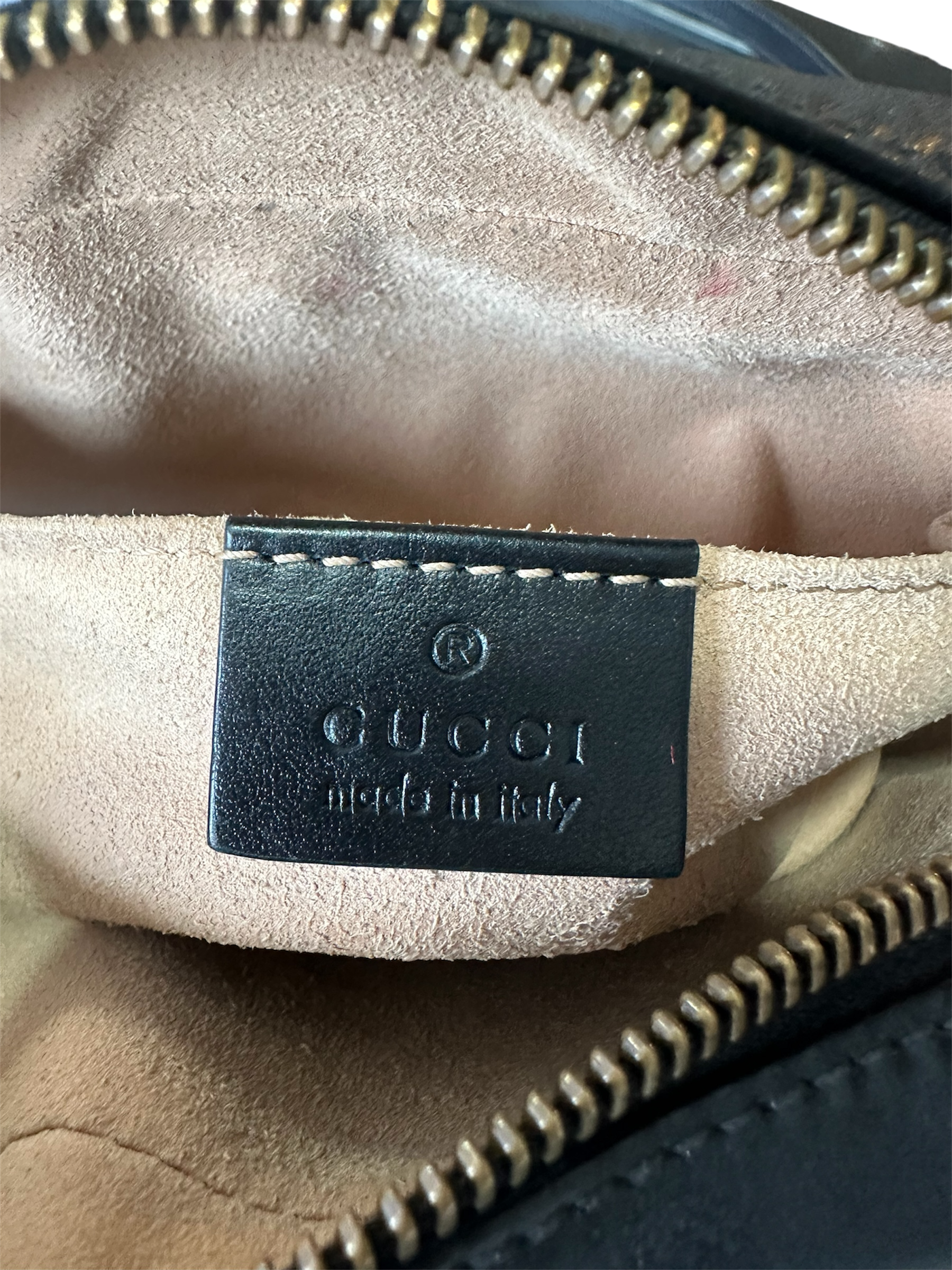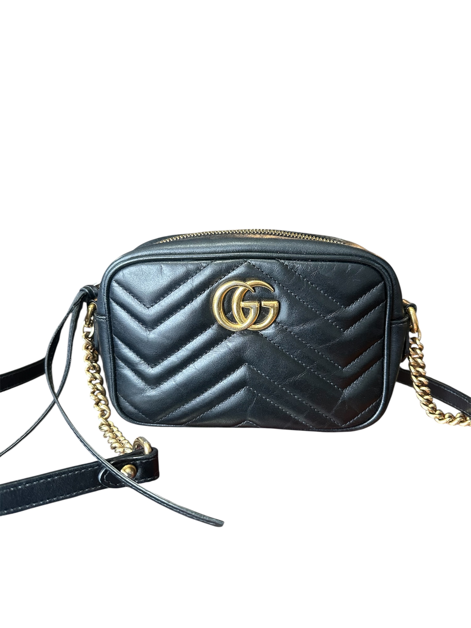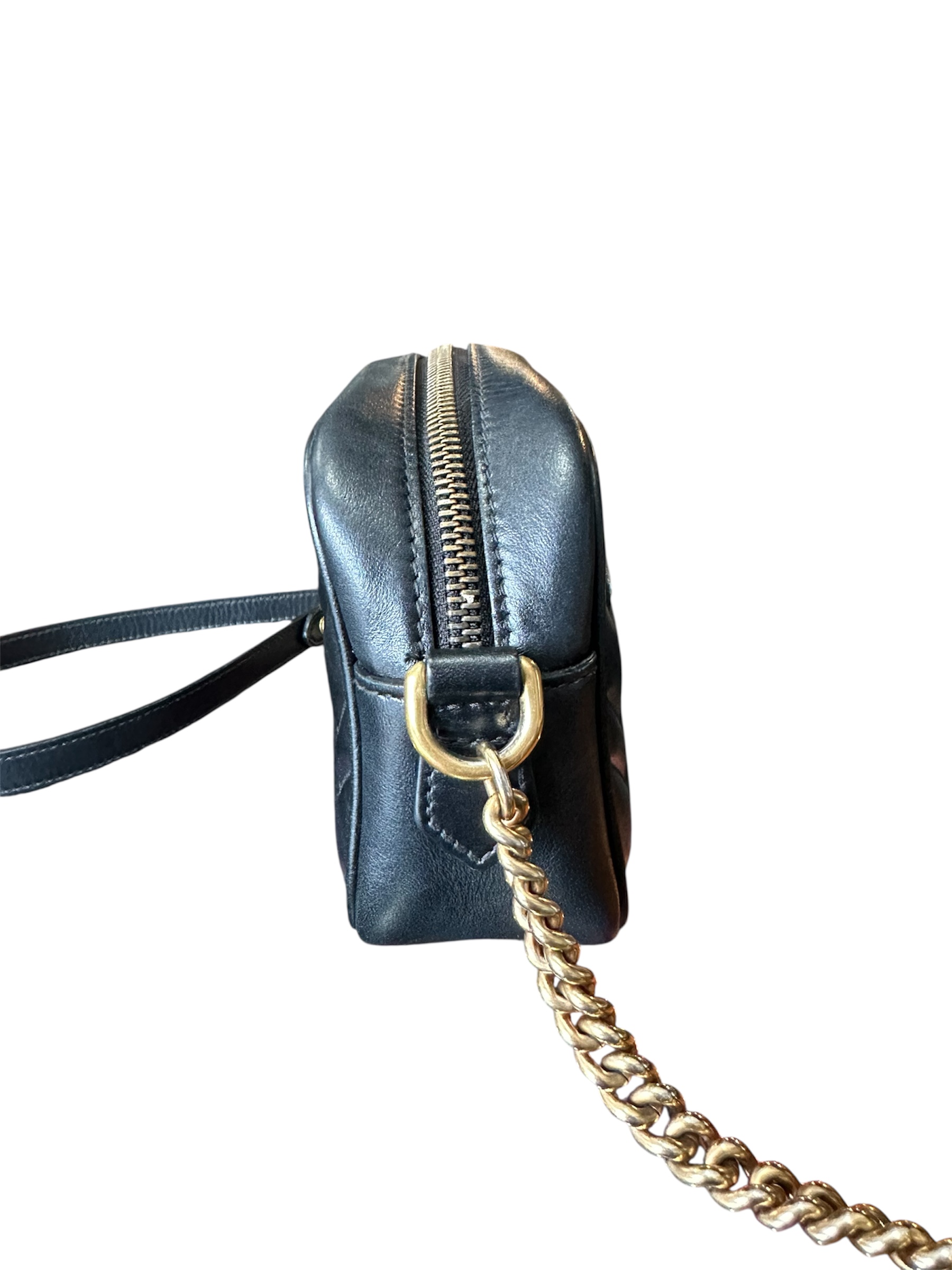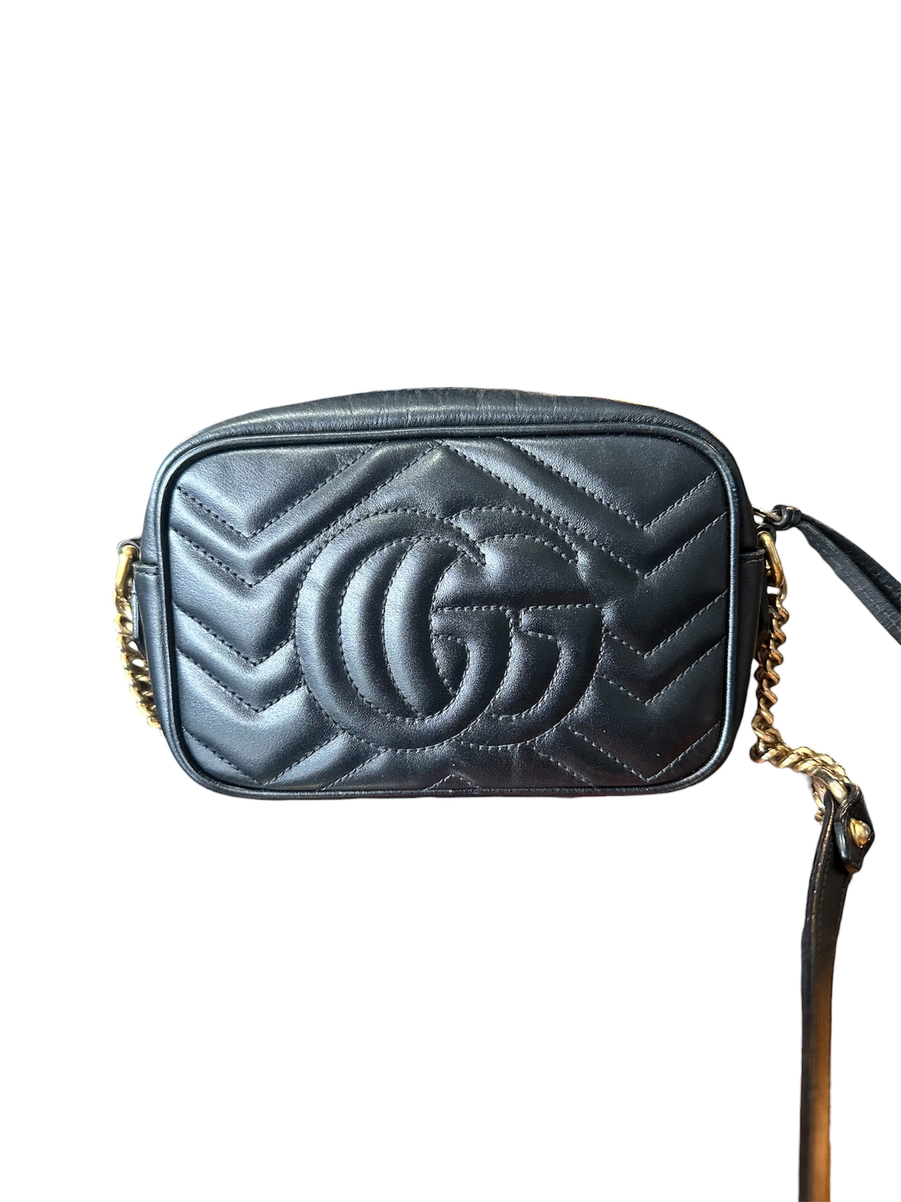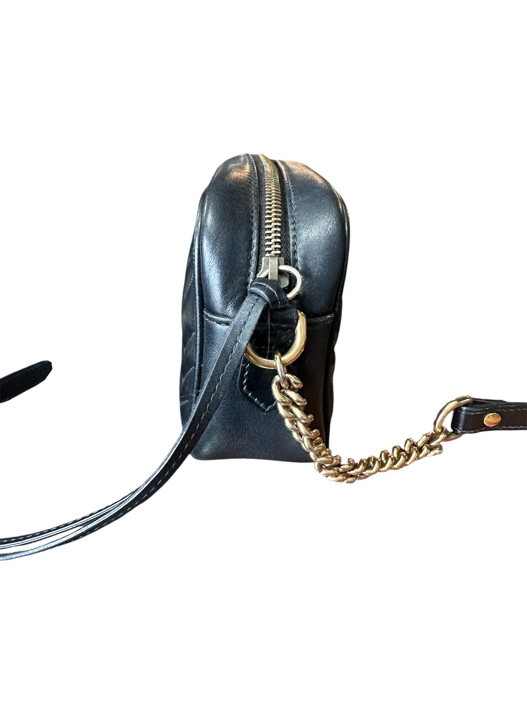 Bolsa Gucci Marmont Preta, confeccionada em couro.