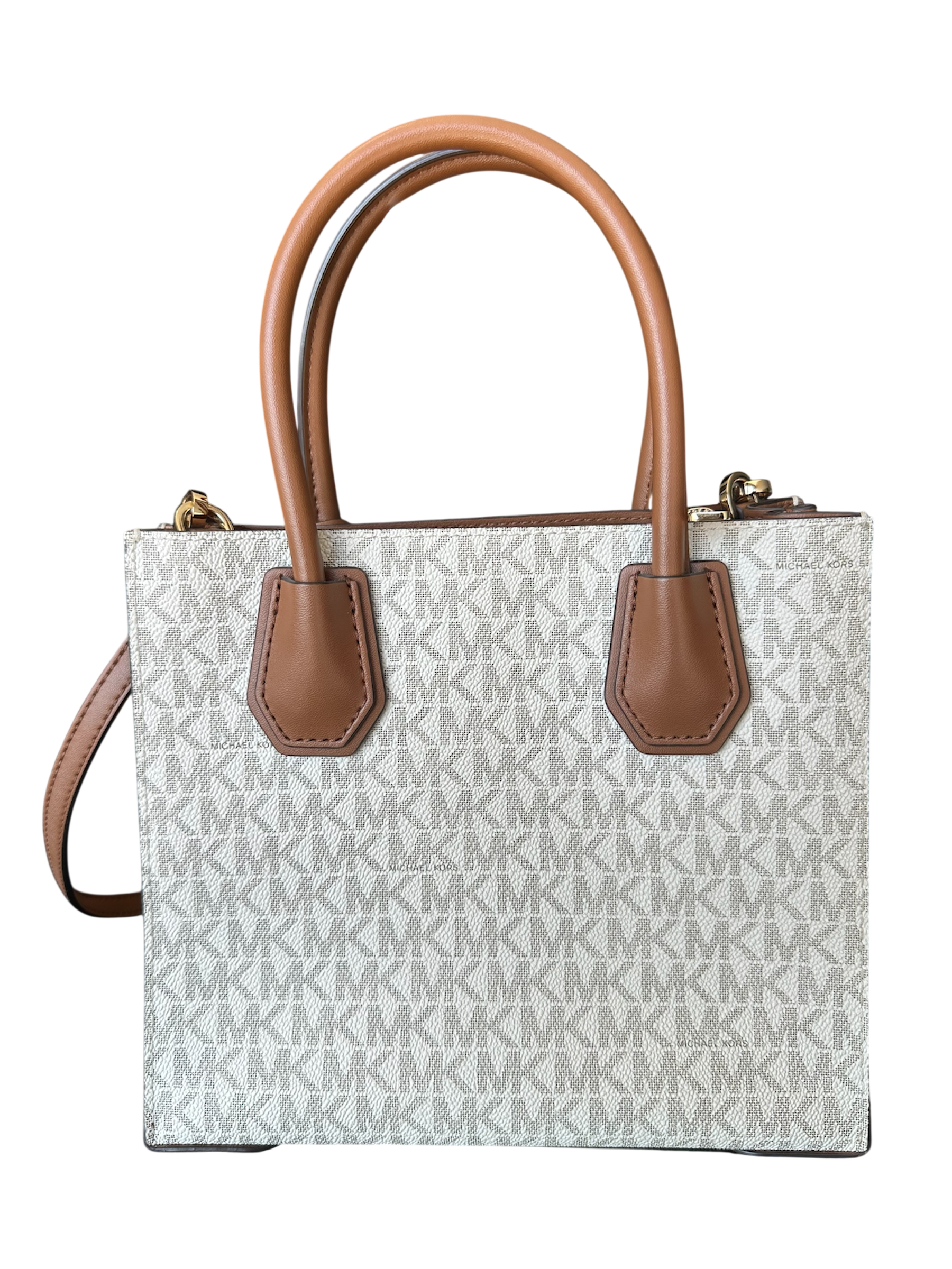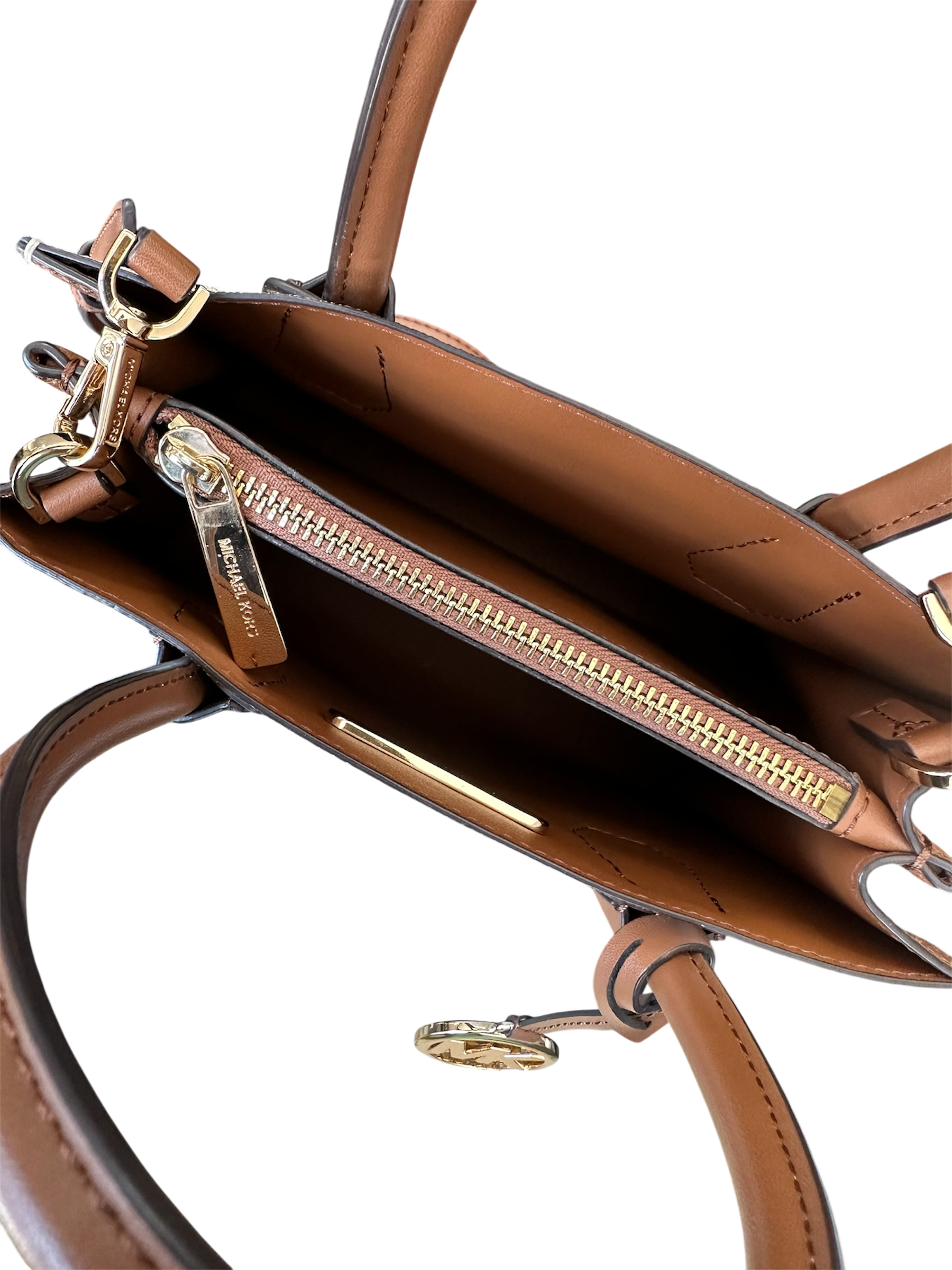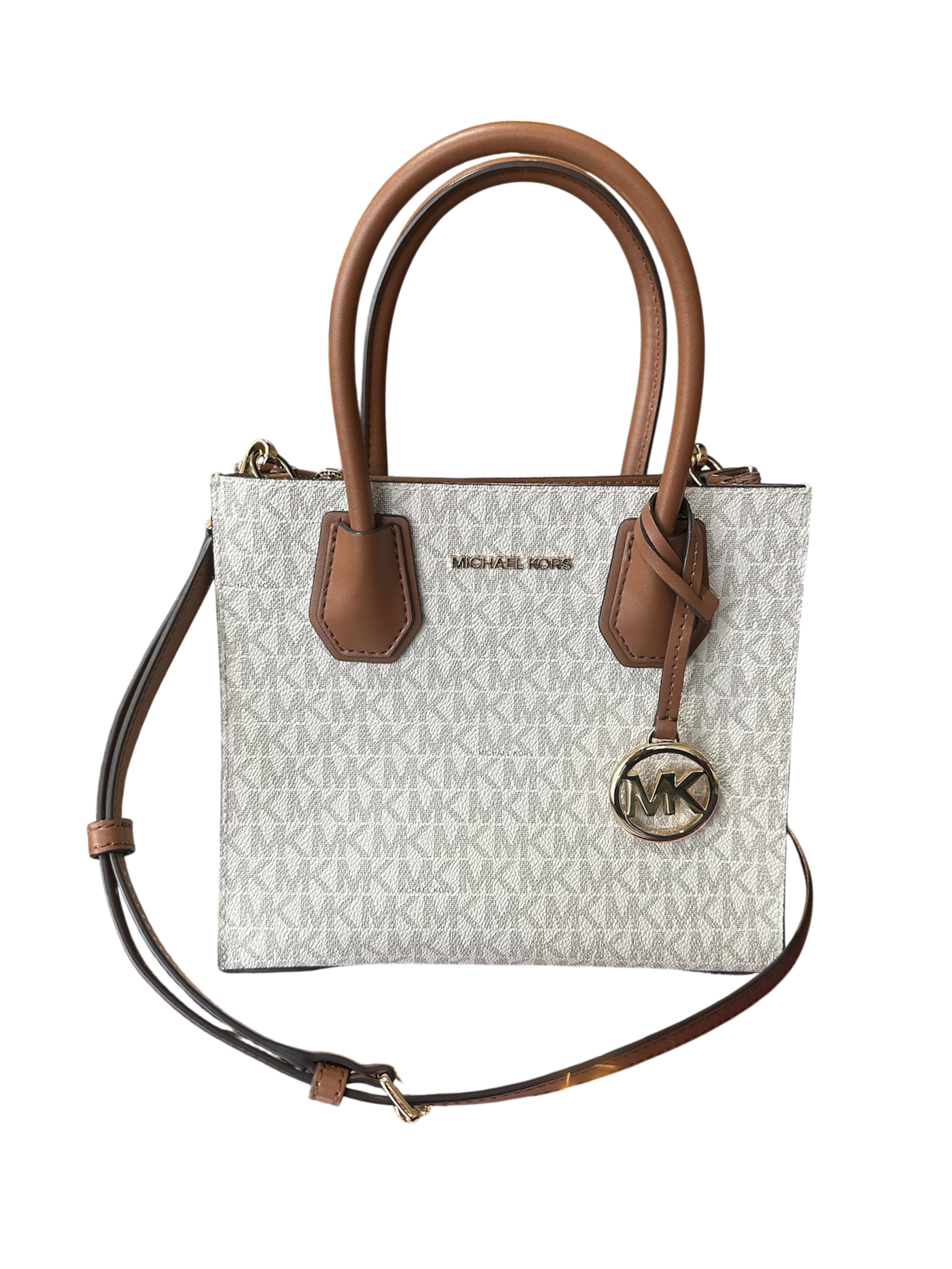 Bolsa Michael Kors Mercer Logo Pequena, confeccionada em couro.