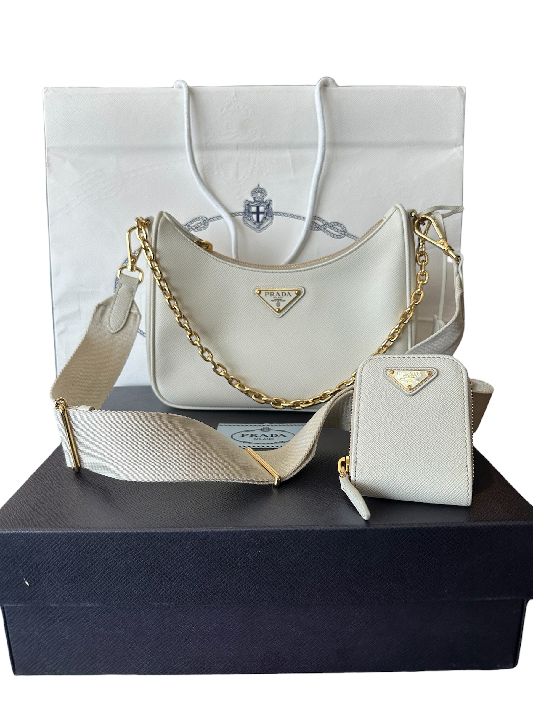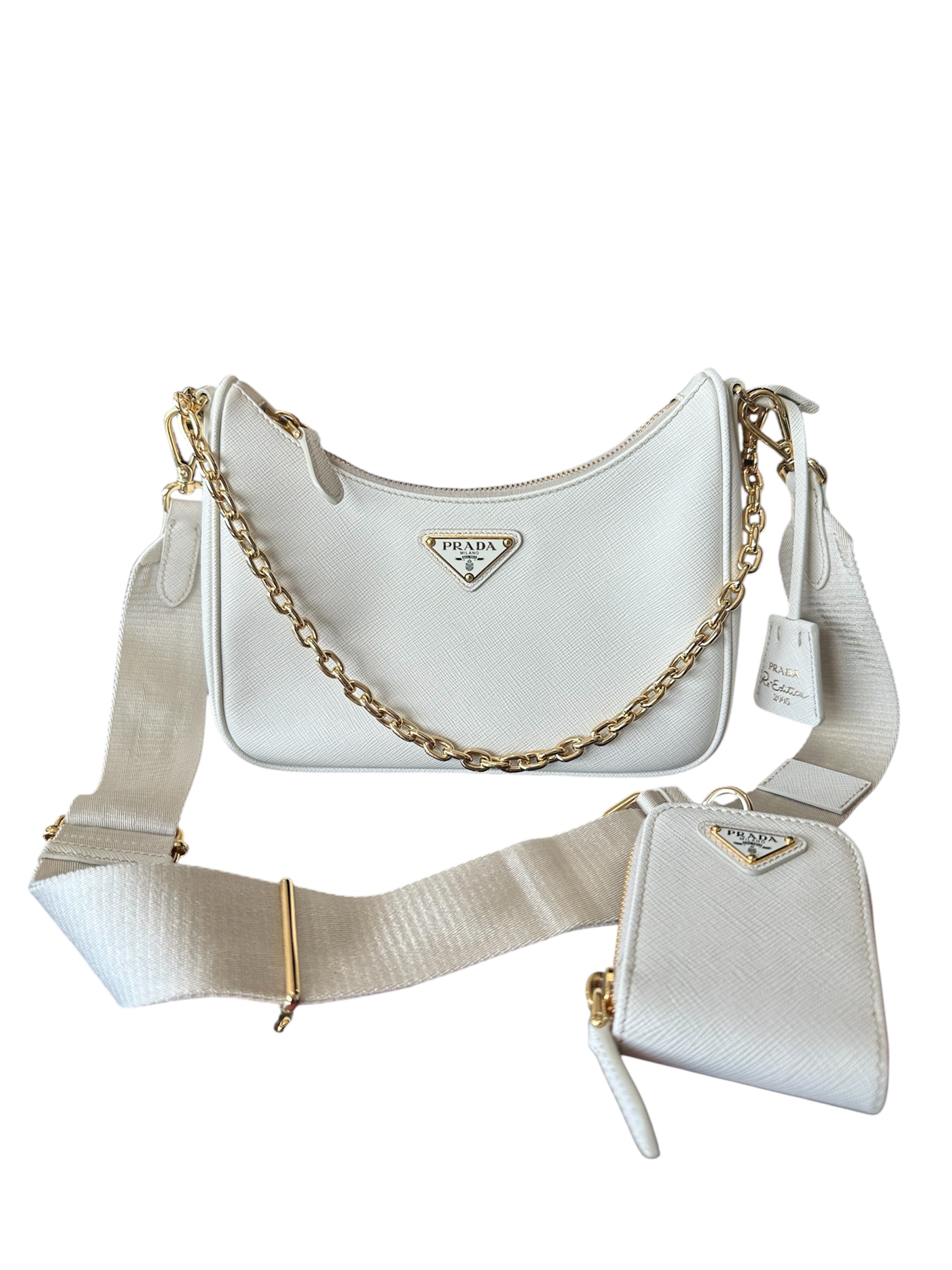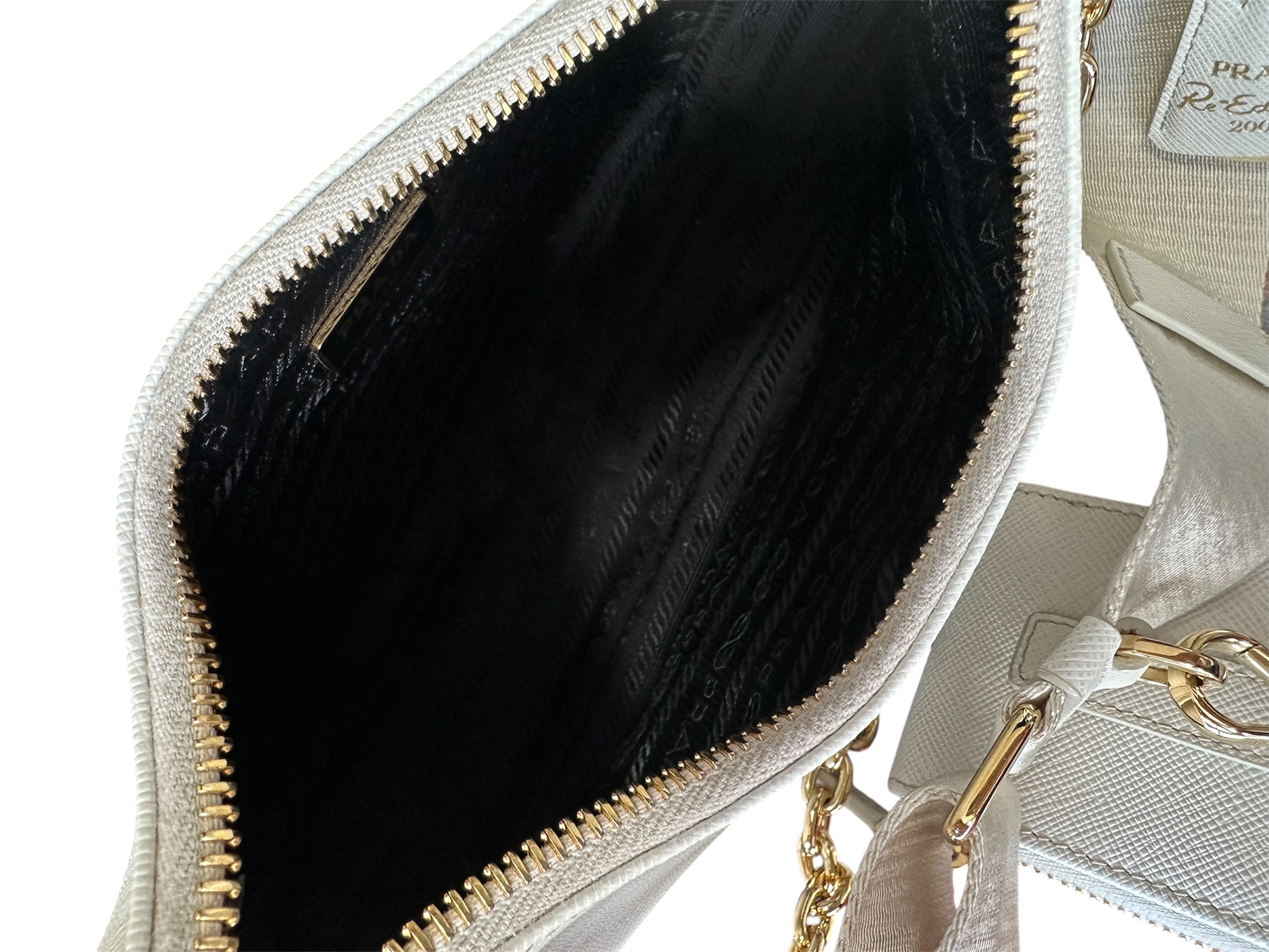 Bolsa Prada Re-Edition 2055 Off-White, confeccionada em couro
