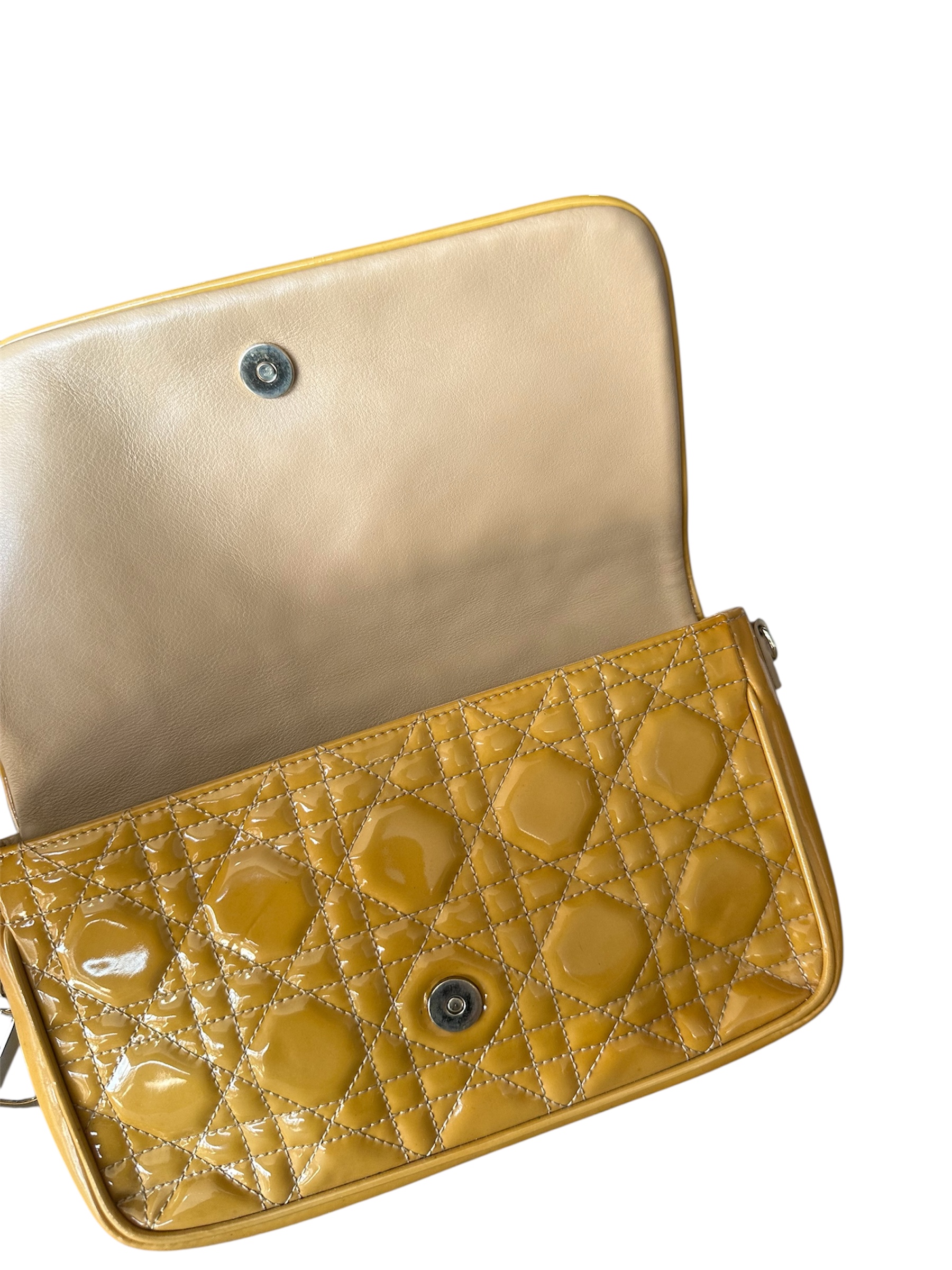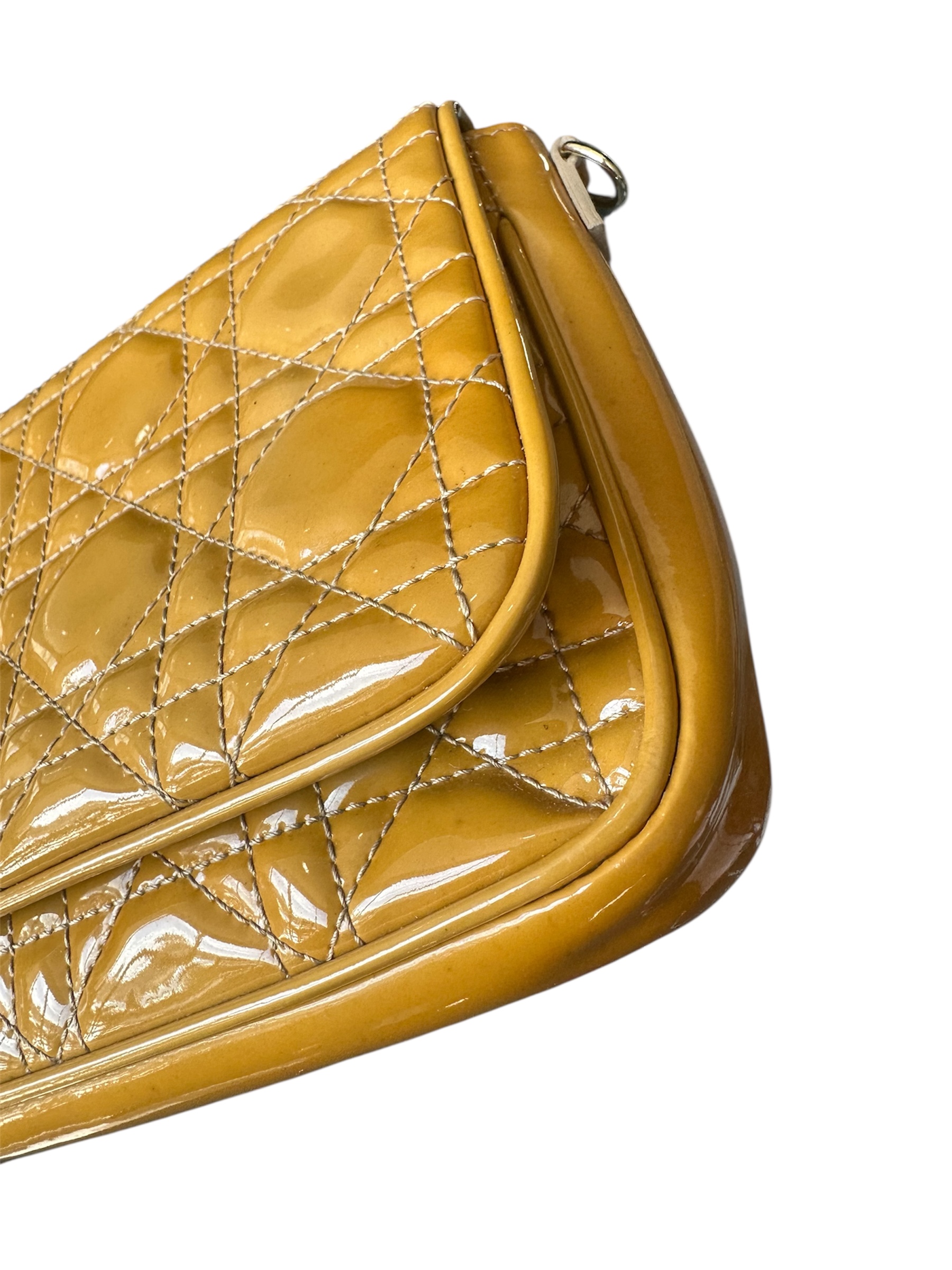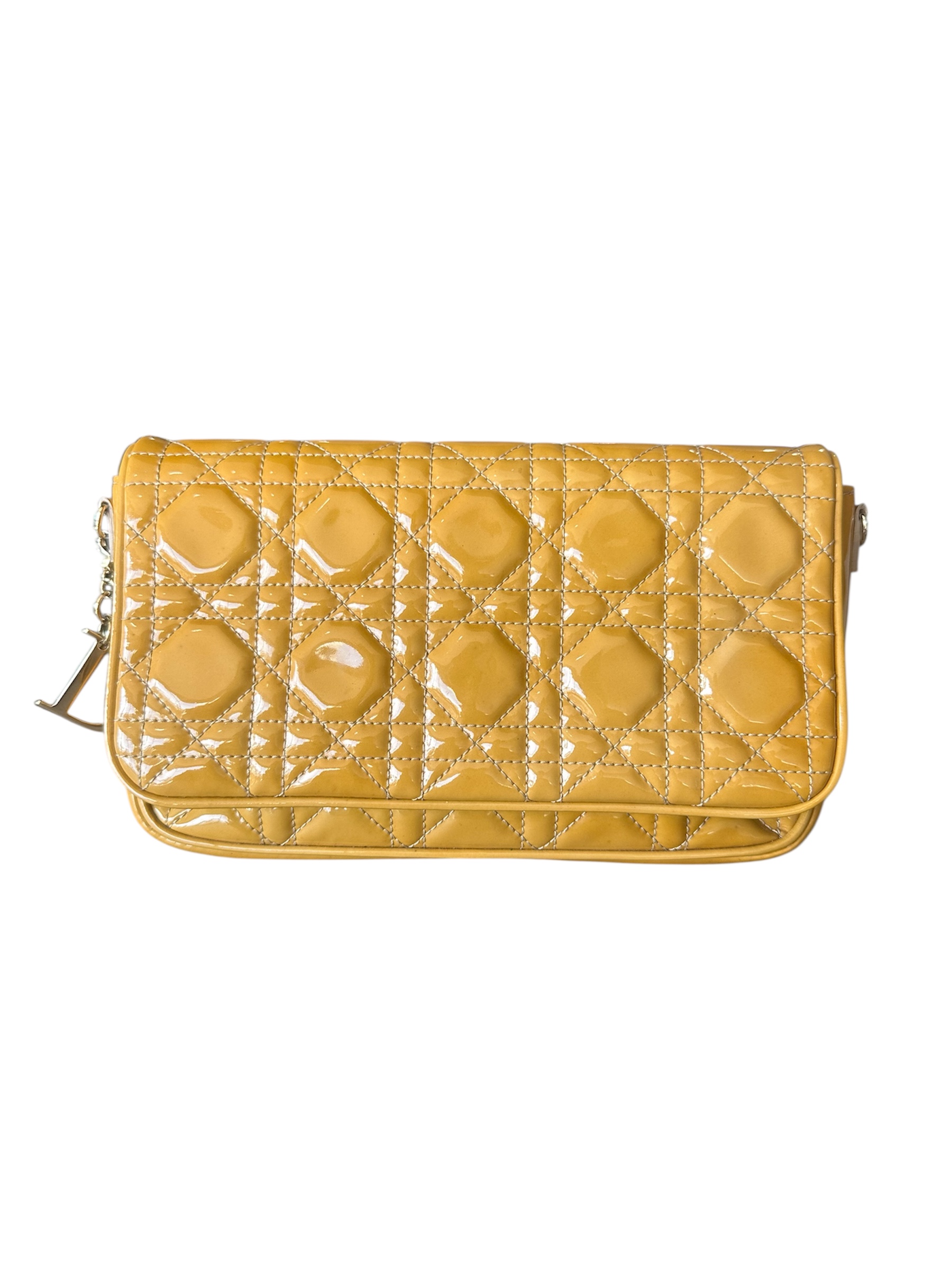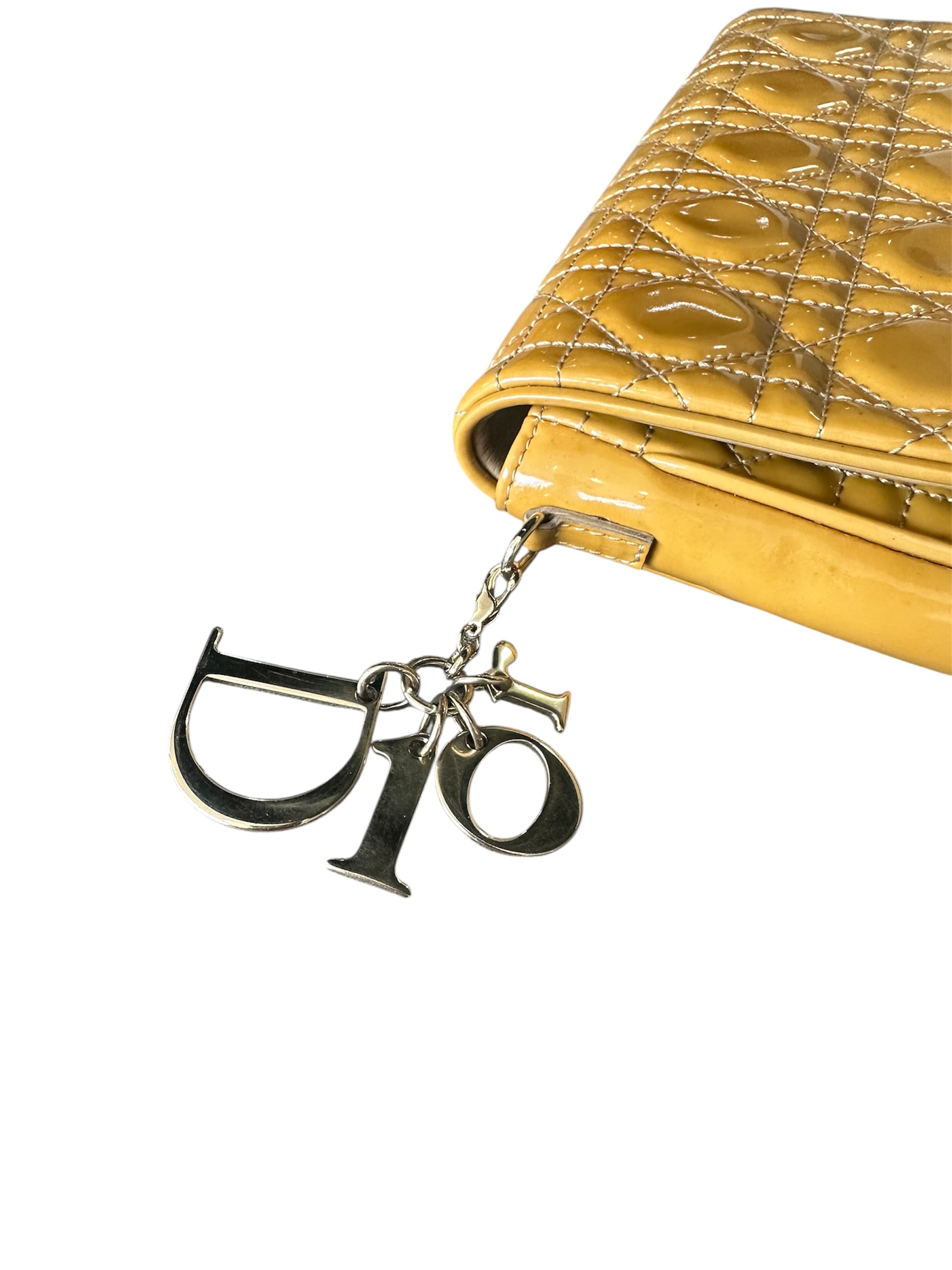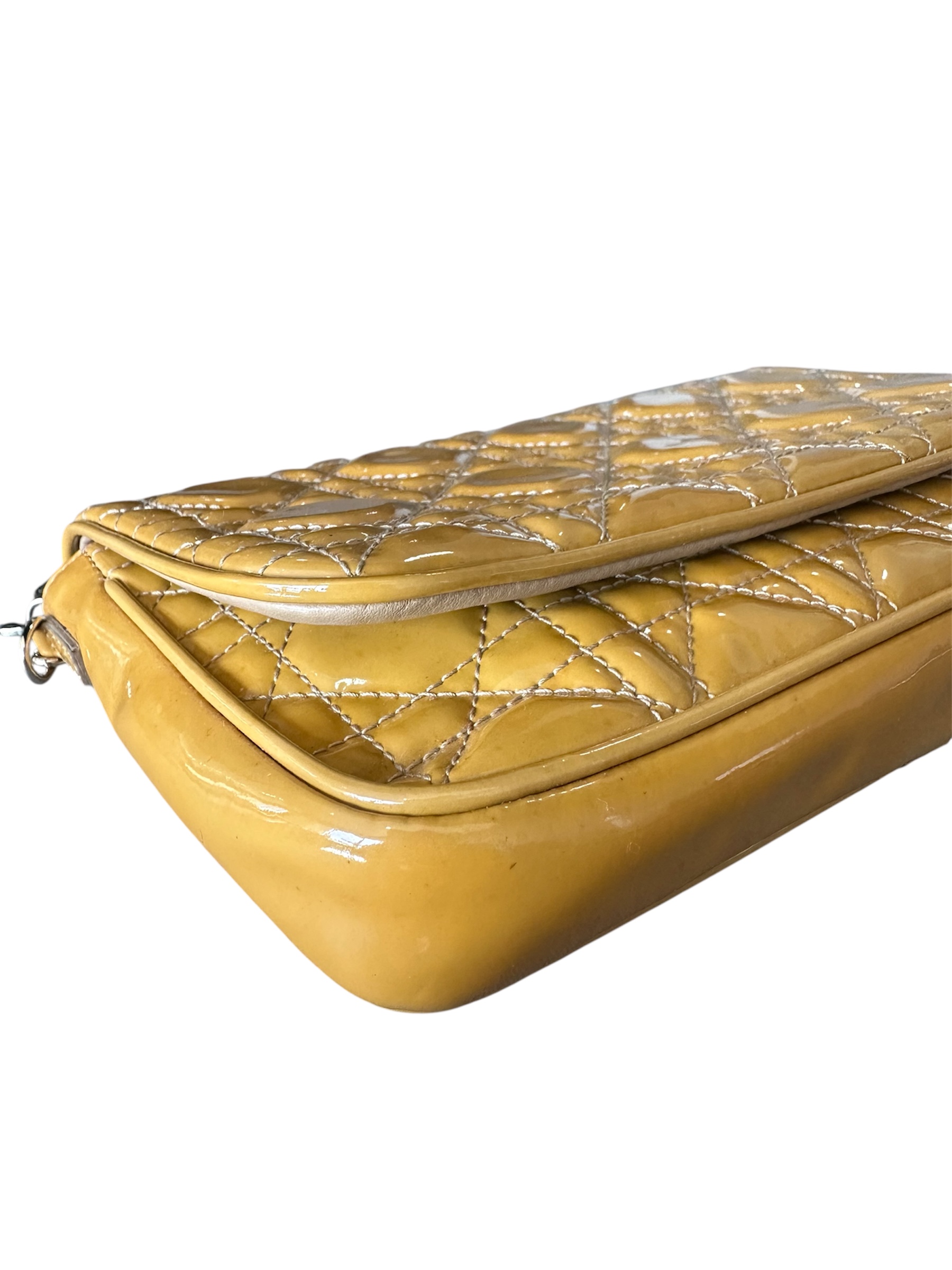 Clutch Christian Dior Amarela, confeccionada em couro verniz.